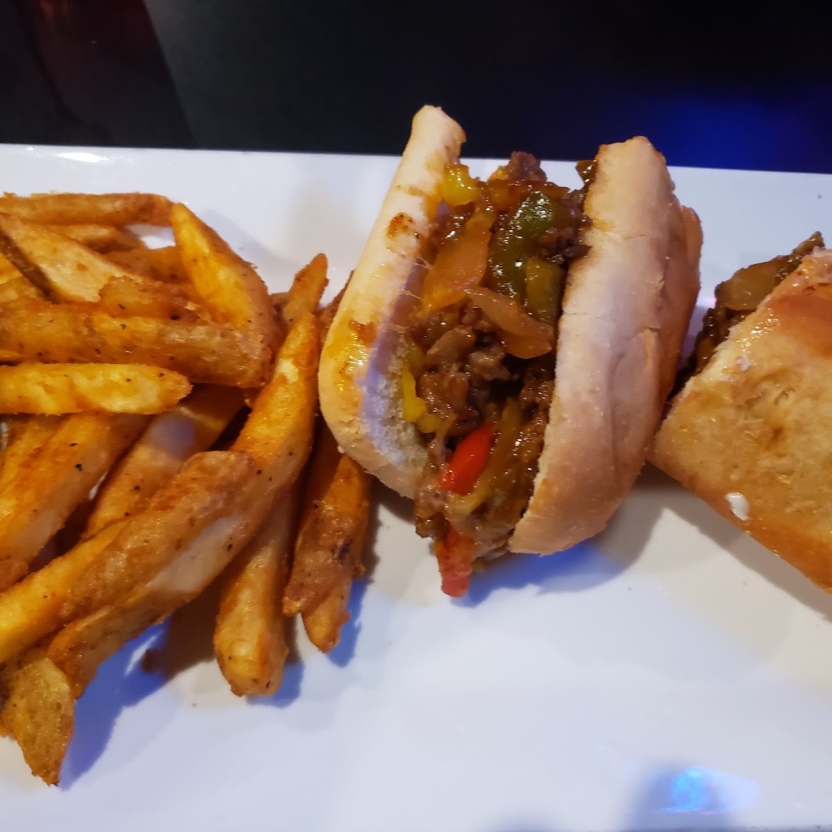 We just had dinner there, they have free pool tables, we had the steak haus cheese steak & the queso cheesesteak both very good and they came with French fries I got mine with crabby fries excellent!