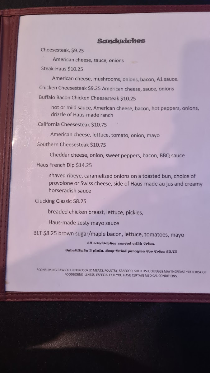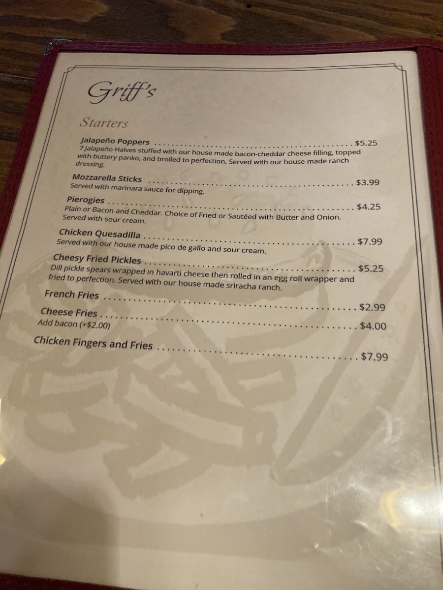 The variety of starters, sandwiches, and fries reflect a menu designed for moments when simple, tasty food is welcome company—whether watching a game, enjoying a casual night out, or finding a neighborhood spot to settle into. The overall experience is grounded and familiar, complementing the friendly, inclusive vibe that defines Griff’s Ale Haus & Grille.